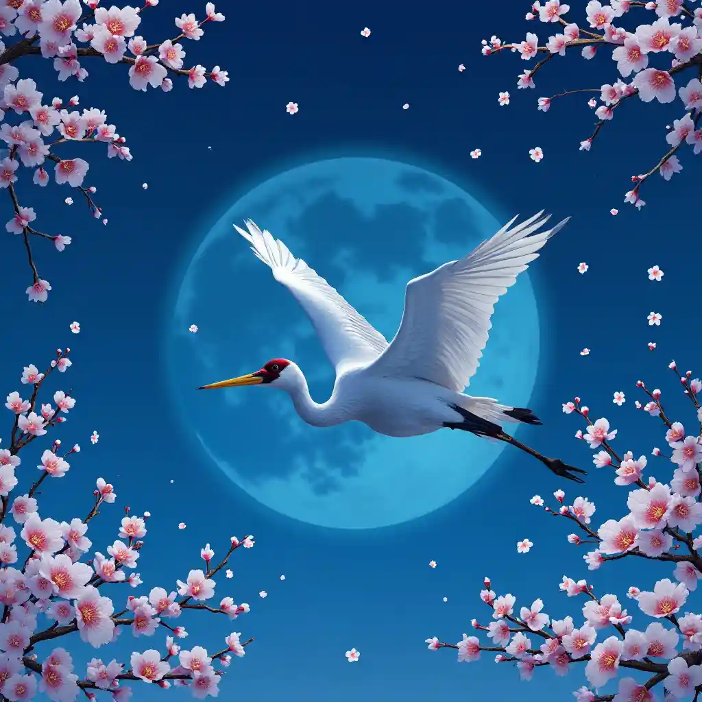 Kipepeo wa Japani Katika Anga la Bluu la Usiku na Maua ya Cherry