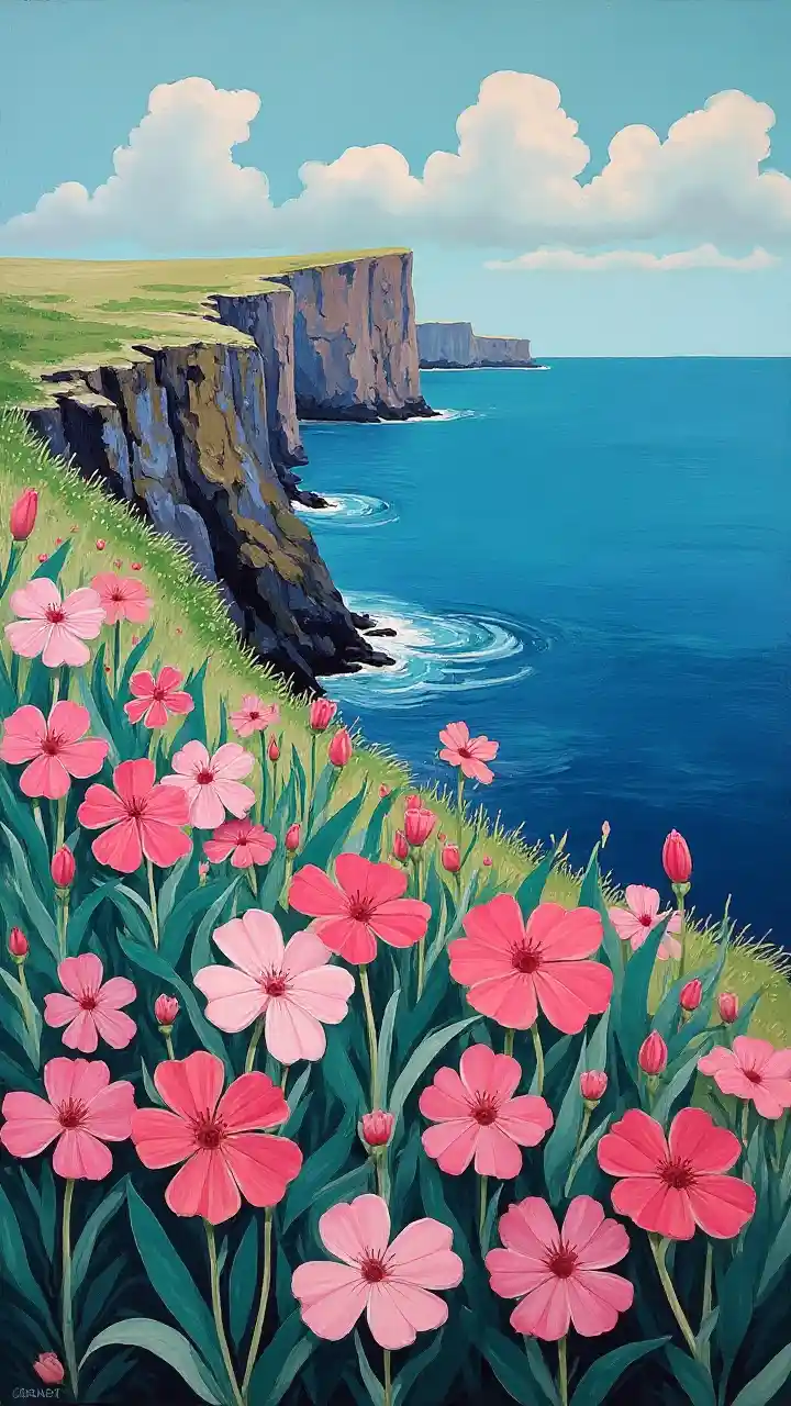 Mchoro wa Andre Lhote. Michoro ya waridi wa baharini, au waridi wa baharini, iliyo kwenye miamba ya pwani ya Orkney, inaonyesha uzuri wa maua hayo. Maumbo ya rangi ya waridi, bluu, na kijani-kibichi yanatumiwa kuonyesha tofauti kati ya maua hayo na mandhari yenye kuvutia.