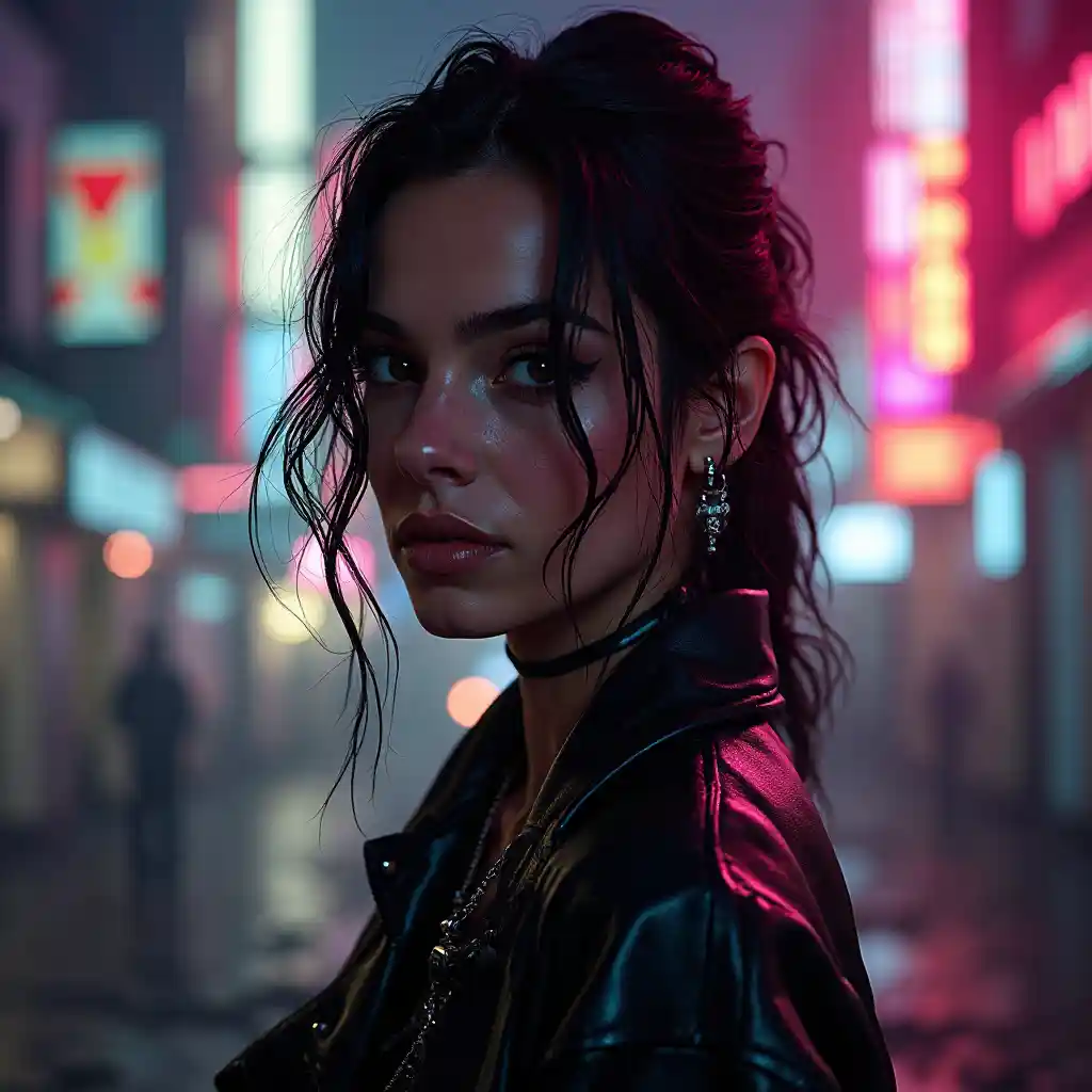 Emily Ratajkowski katika Cyberpunk Streetwear Portrait
