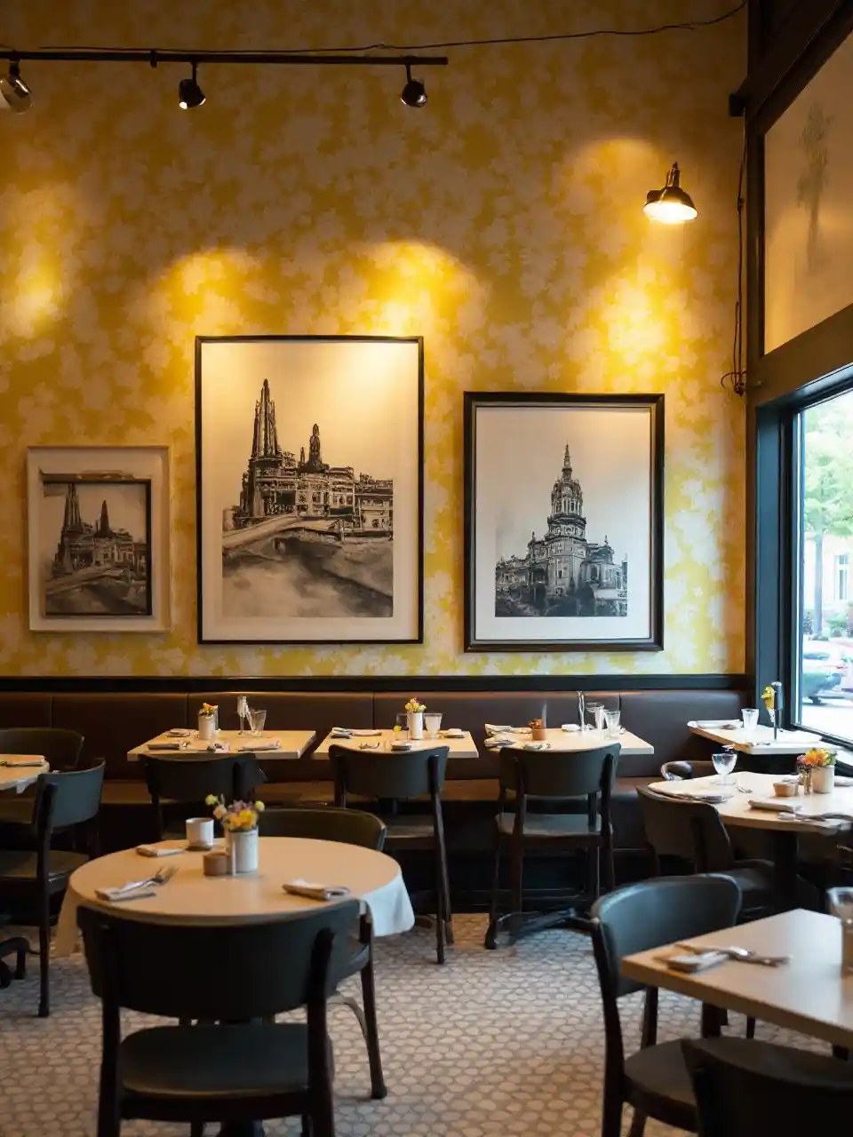 SawyerMkahawa wa Washington DC ambapo picha zote katika mgahawa ni picha za chakula na alama za DC. Rangi yao lazima nyeusi, nyeupe na njano jua mkali njano #fed33c