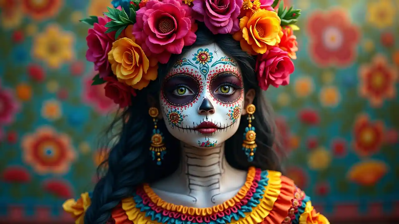 Siku ya Wafu Mexico Catrina Msichana Mwenye Rangi