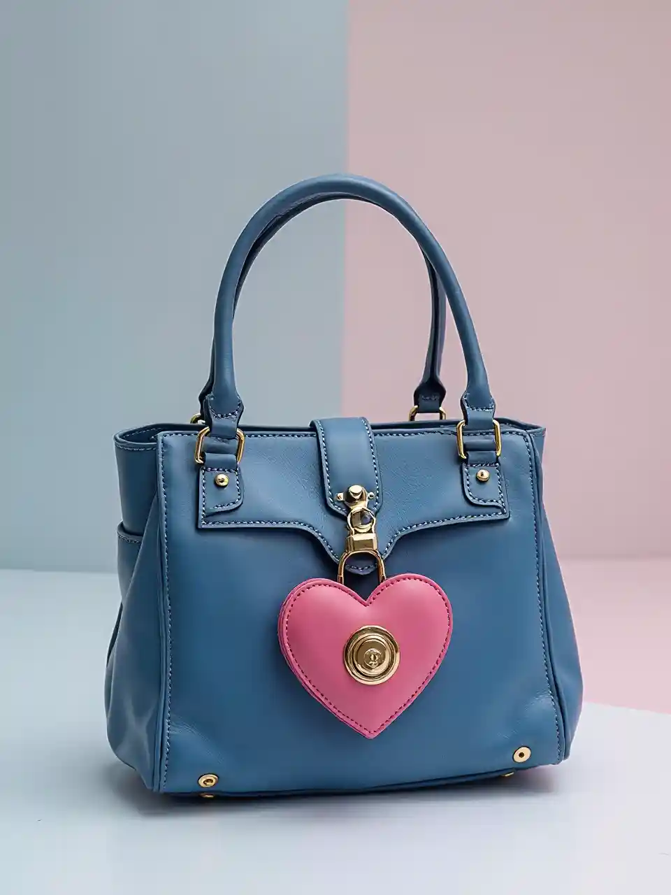 kubuni wanawake mfuko na rangi magenta na bluu na kufunga moyo