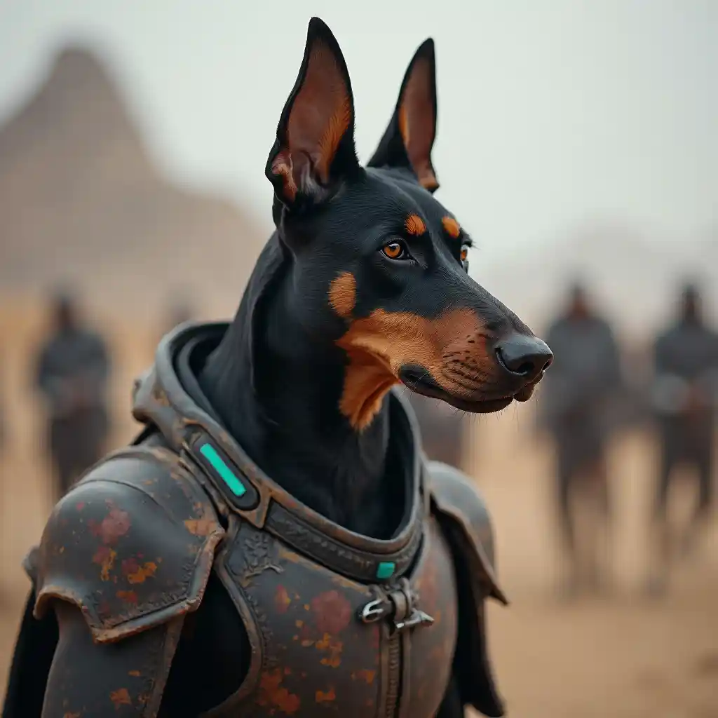 DanielDoberman masikio futuristic mbwa shujaa katika vita