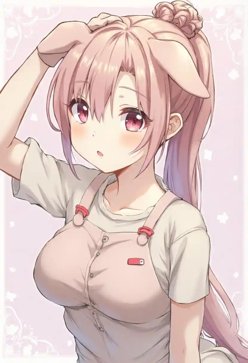 PenelopeNsfw, 1girl, solo, loli, mbwa msichana, msichana kipaji, masikio dipstick, oppai loli, haki macho ya waridi, tareme, matiti makubwa, nywele ndefu, single braid, scrunchie,