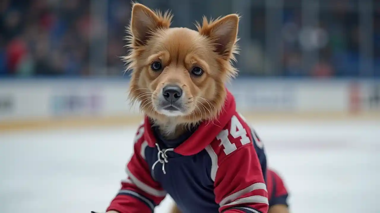 Mbwa Akiwa Amevaa Nguo za Hockey