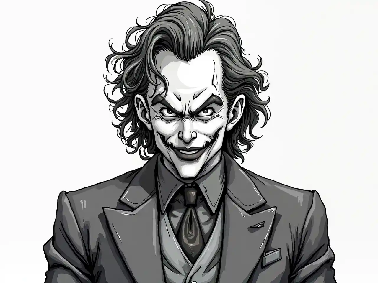 Joaquin Phoenix kama Joker lakini imechorwa katika Dragon Ball Z style. Nyeusi na nyeupe