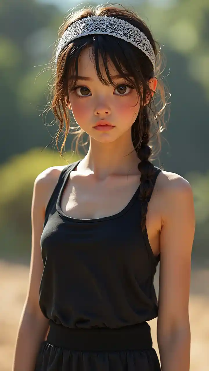 PeytonPicha halisi ya picha ya msichana mwenye kuvutia na sura ya ndoto katika nguo za kisasa za michezo na kuvaa kichwa cha rangi ya nyeupe. Katika nuru yenye kung'aa, kama alasiri yenye jua.