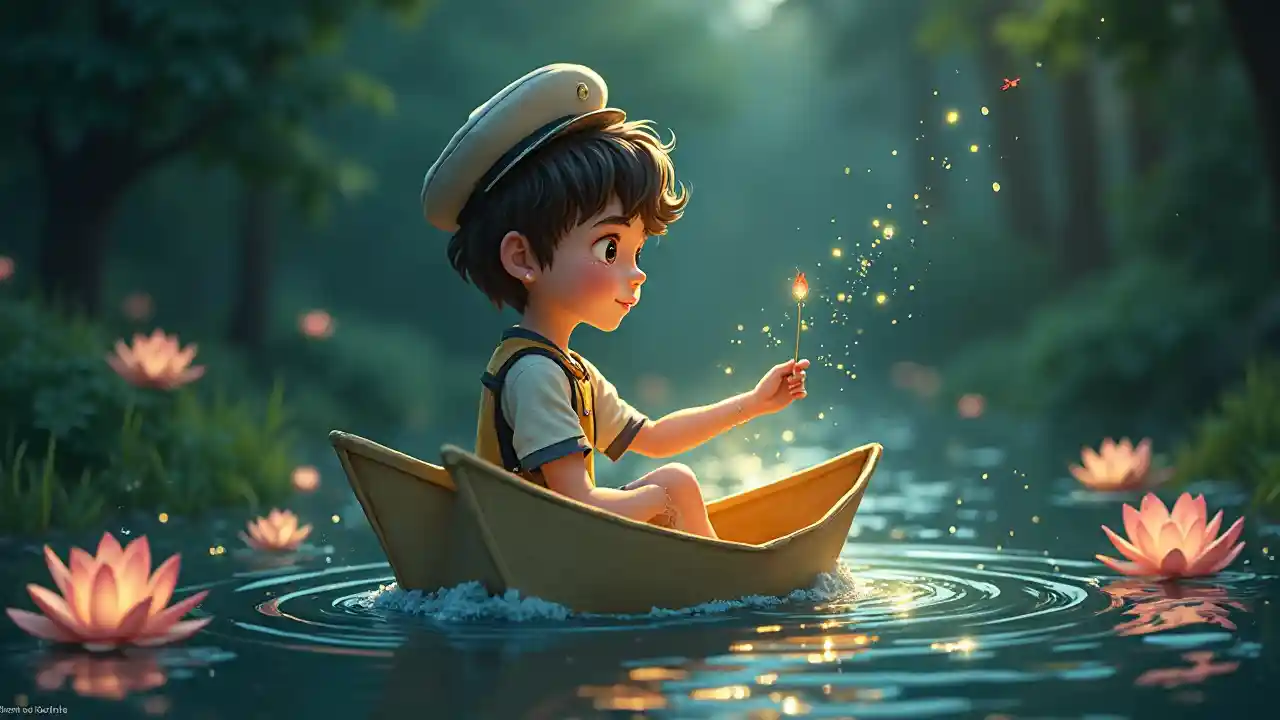 Mvulana Anasafiri kwa Mashua ya Karatasi