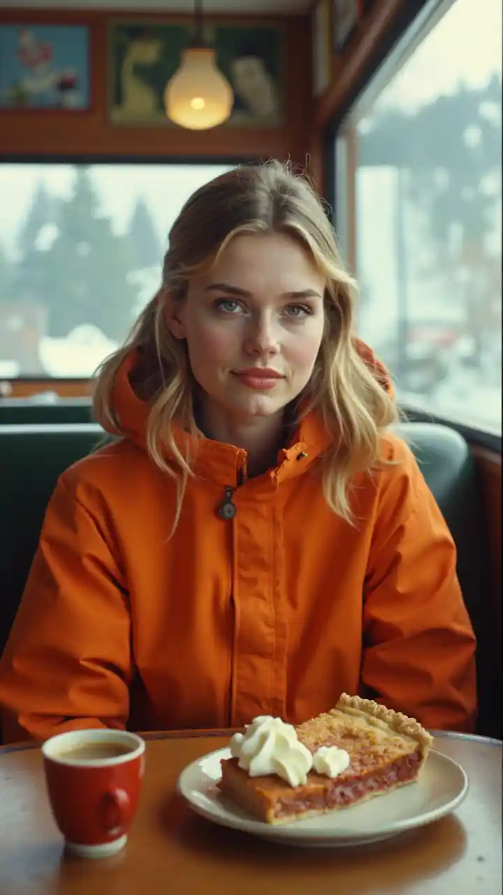 Uholanzi Girl katika 70s Diner na Pie Coffee