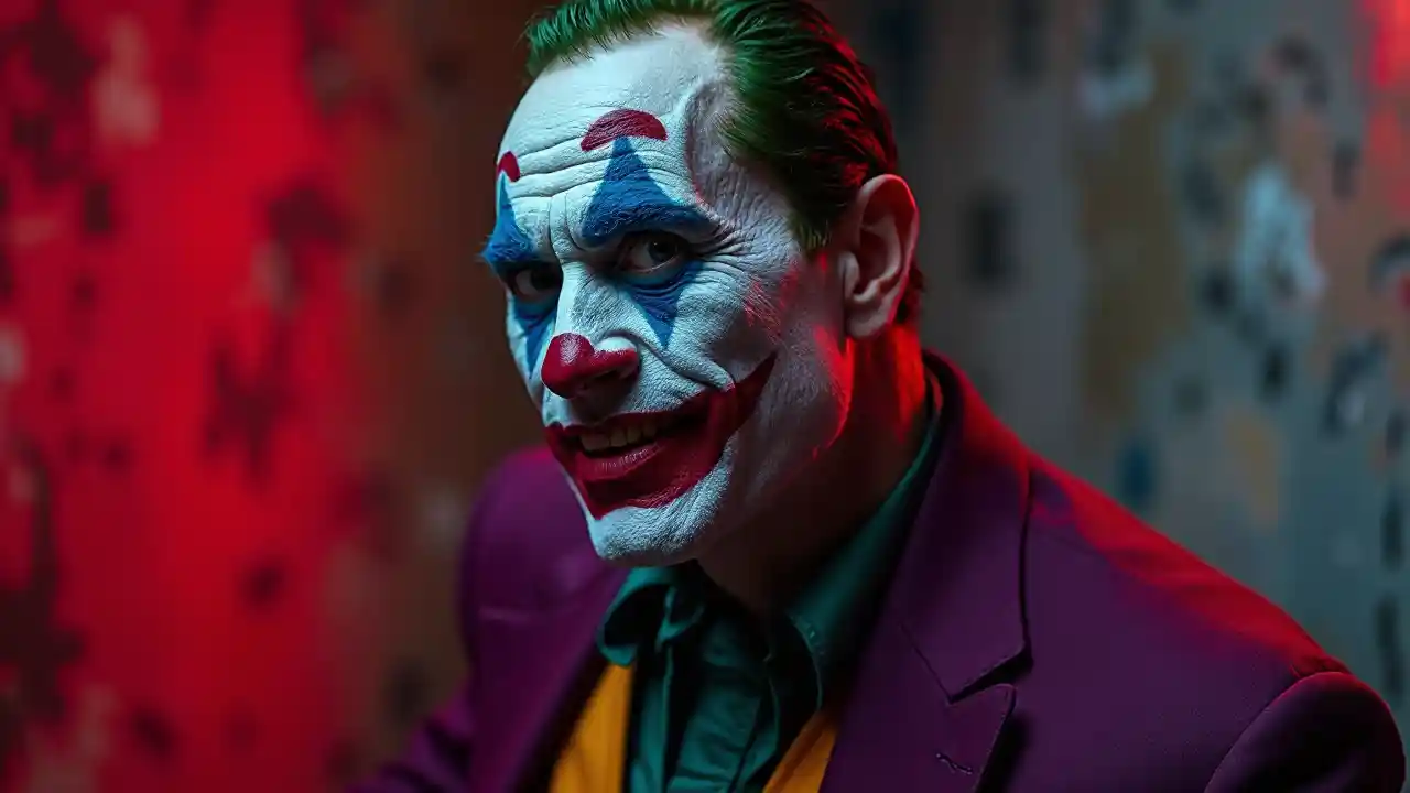 EmeryDwayne Johnson amevaa mavazi ya Halloween yenye kutisha katika mapambo ya joker, Sinister, Vivid saturated colors, Contrast color