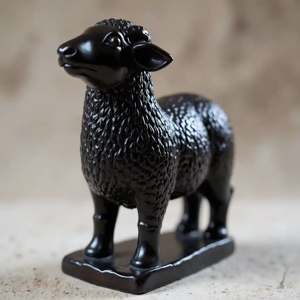 Sanamu ya Kondoo wa Eboni Iliyochongwa kwa Mikono - Uchongaji wa Mti wa Ufundi