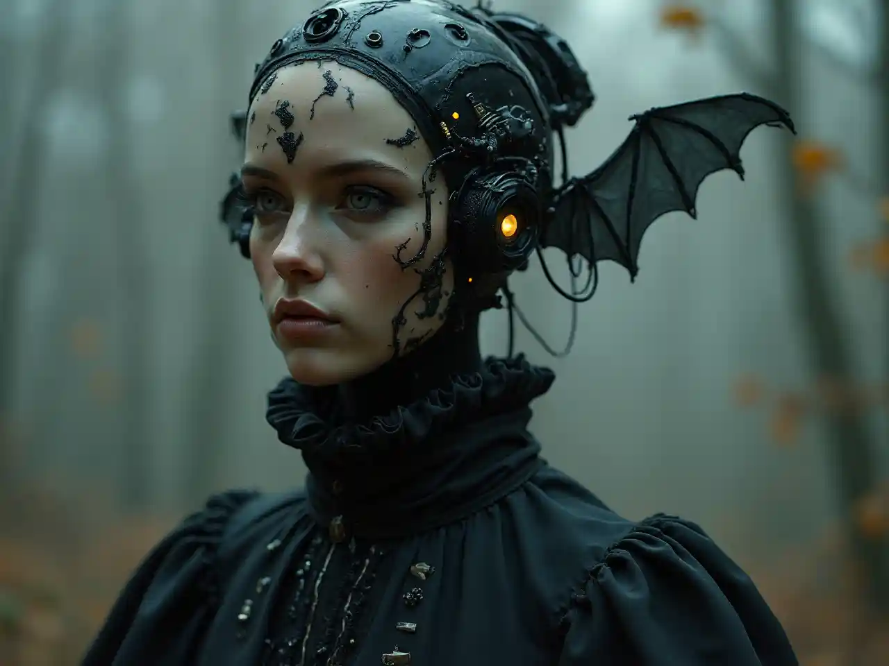 Futuristic Gothic Robot Msichana katika mavazi Nyeusi