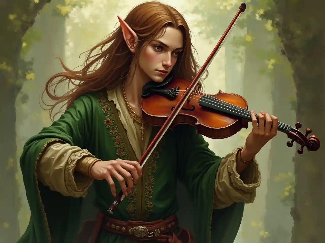 Bardi wa Elf Akicheza Viol katika Mtindo wa Enzi za Kati
