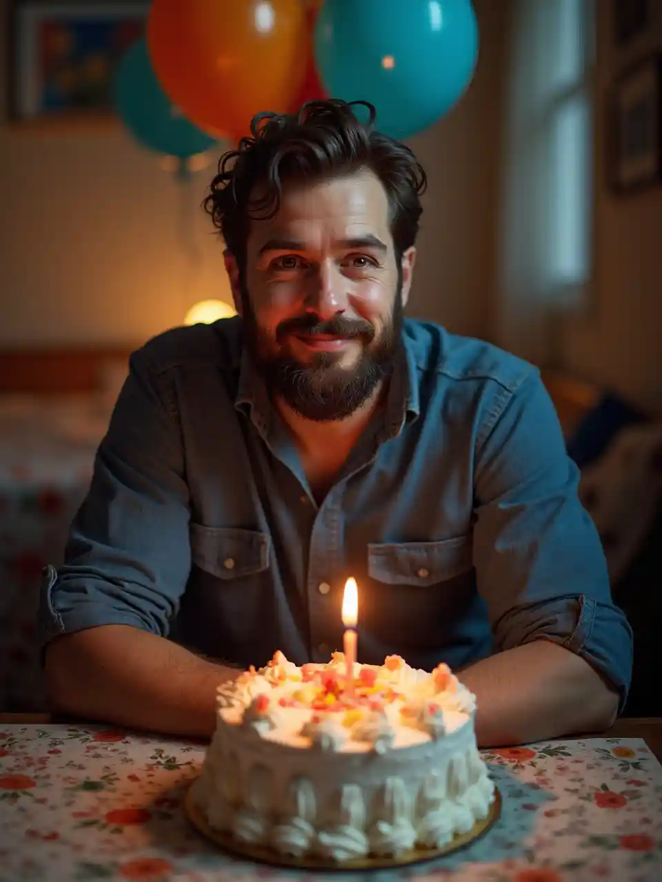 Kusherehekea Uhai: Mwanamume Mwenye Keki ya Kuzaliwa na Baluni
