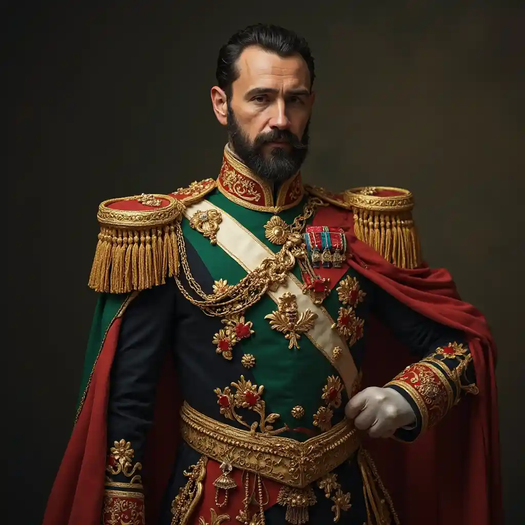 Mfalme Maximilian wa Mexico na nguo na insignia za kifalme picha ya mwili mzima high quality kwa kina na kifahari