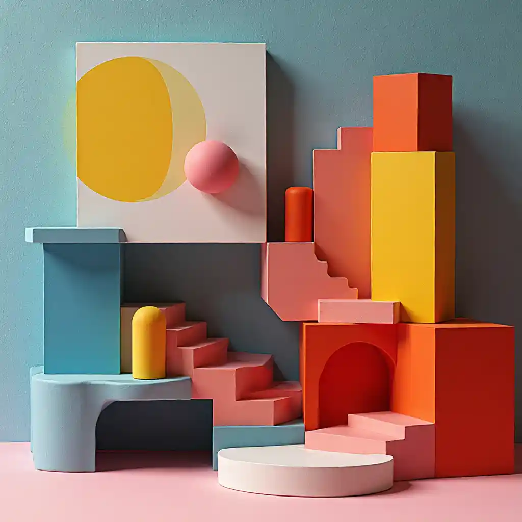 Vinyl toy na rangi hai na vifaa translucidely aliongoza katika michoro ya Escher na usanifu minimalist kisasa.