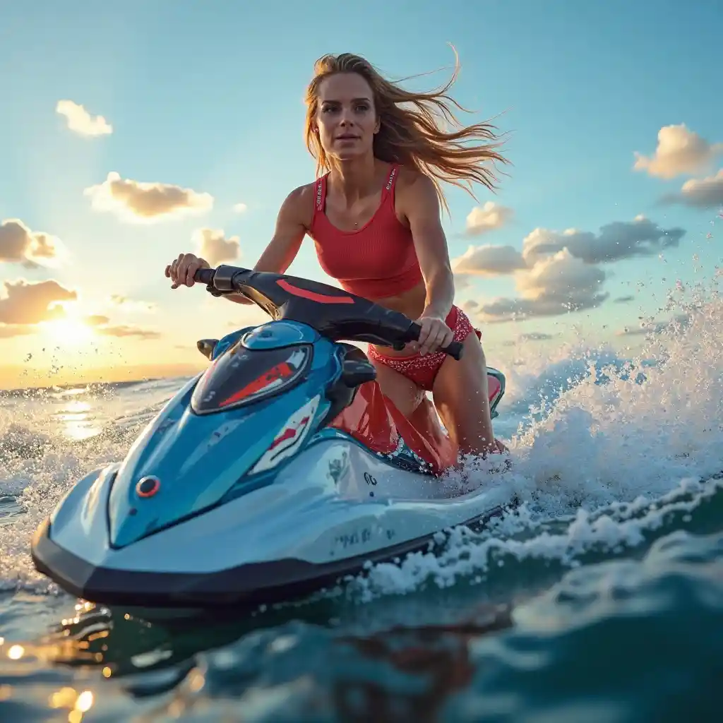 Picha ya Kijamaa ya Msichana Mdogo wa Ujerumani Kwenye Jet Ski