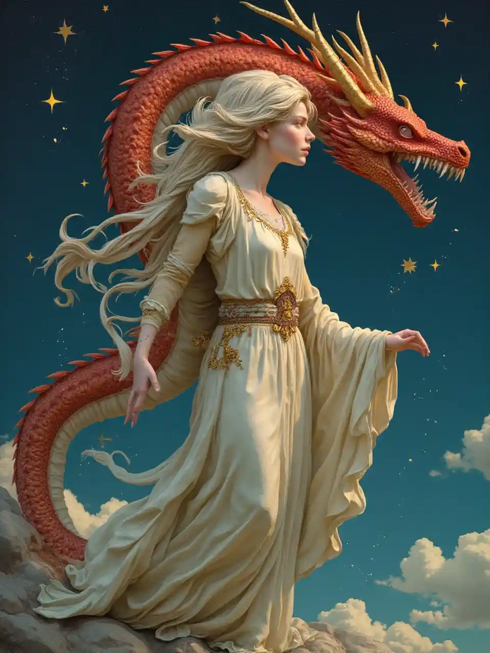 Mwanamke Mwenye Nywele Nyeupe na Joka