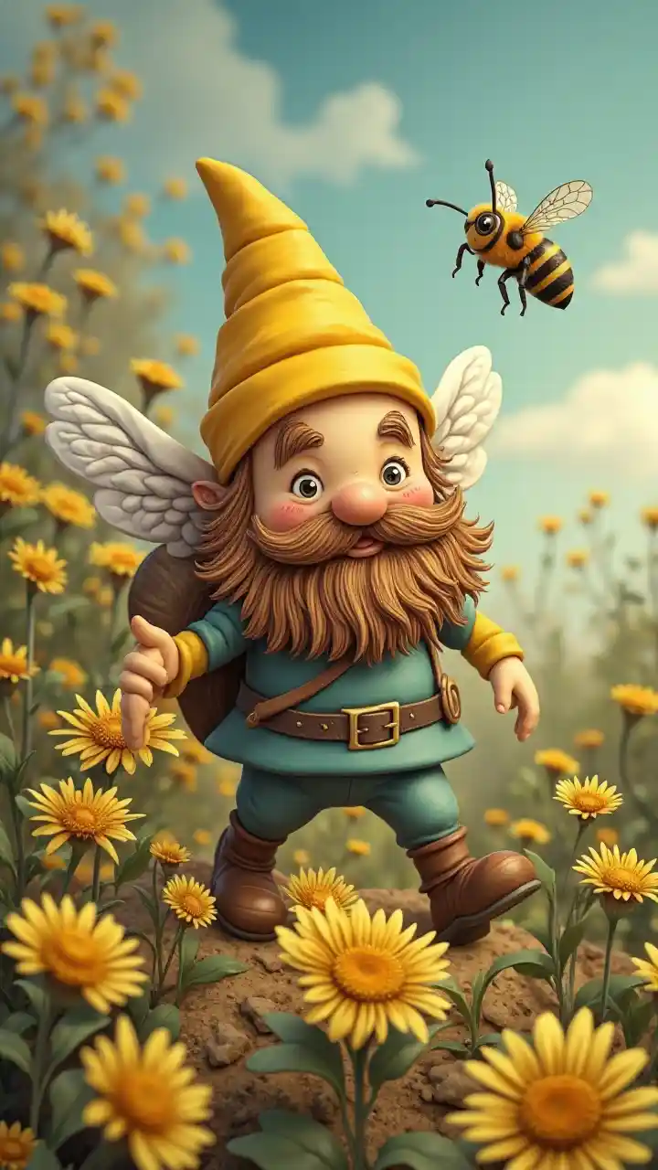 Kipepeo wa hadithi ya kuwaziwa mwenye ndevu na ndevu, husafiri kwa ndege ili kumwona nyuki na kujaribu nyasi zake