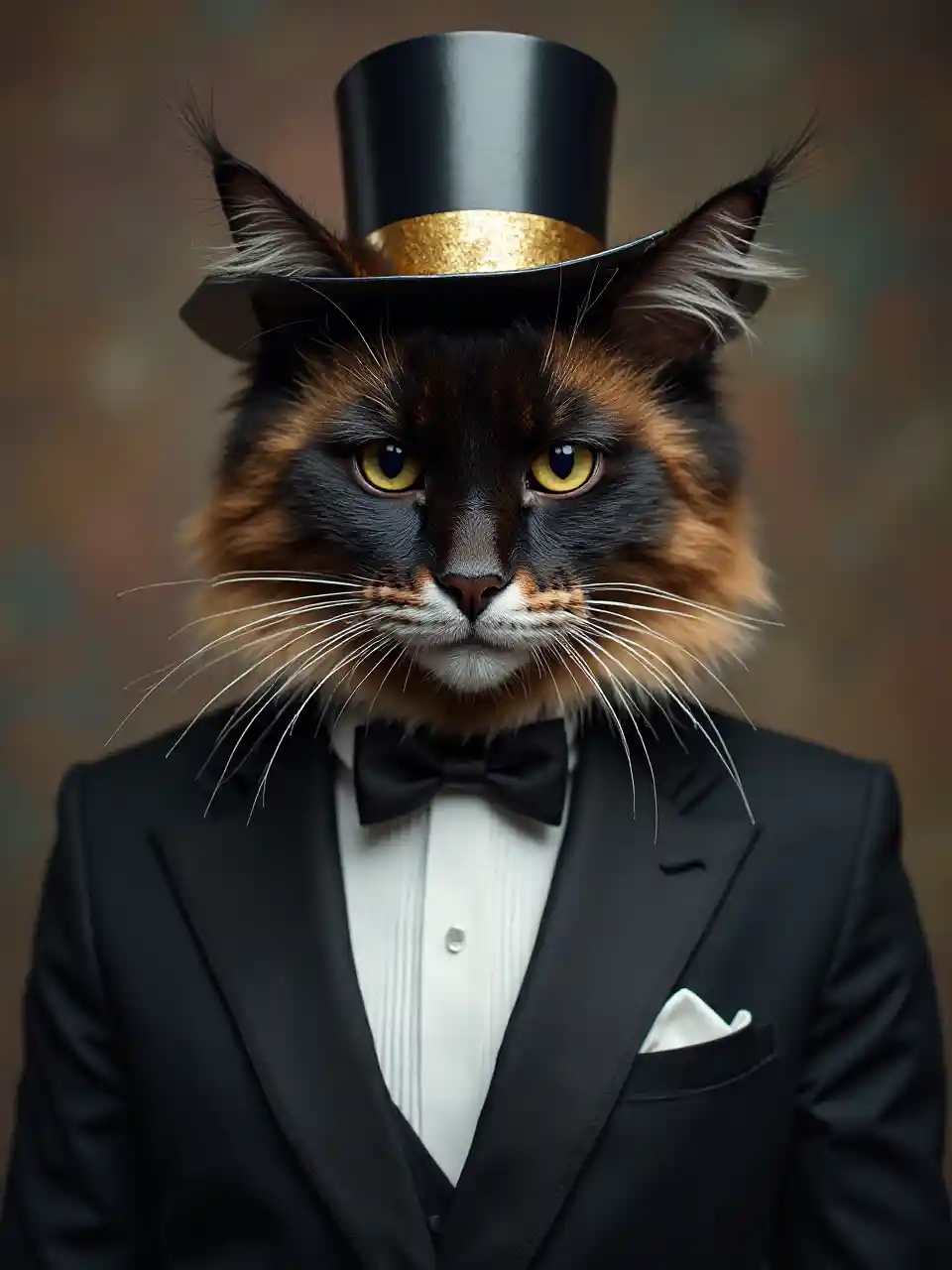 HenryMaine Coon akiwa amevaa smoking na kofia ya chuma