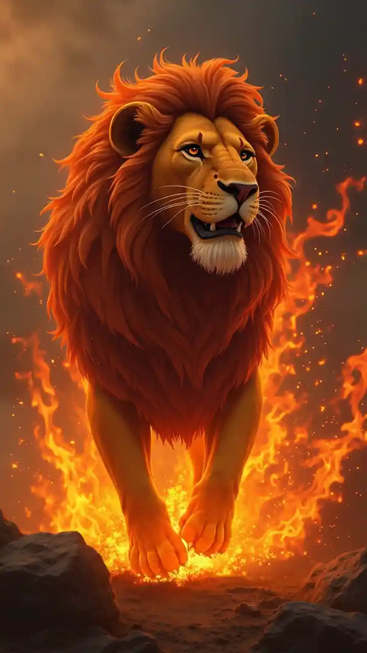 Angri lion king coming out of fire