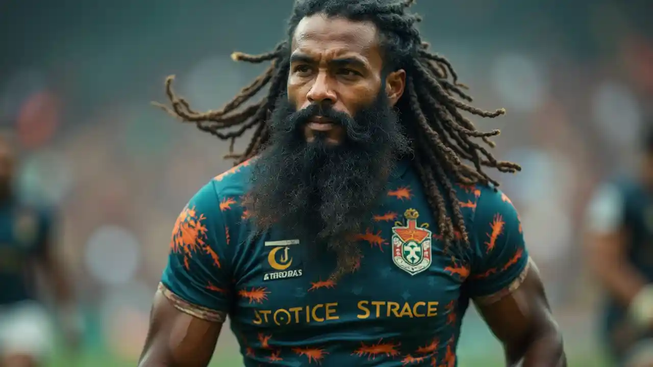 AvaWanaume wa Fiji wenye ndevu Whereing Fiji Jersey kucheza raga kama Thor Mungu wa ngururu