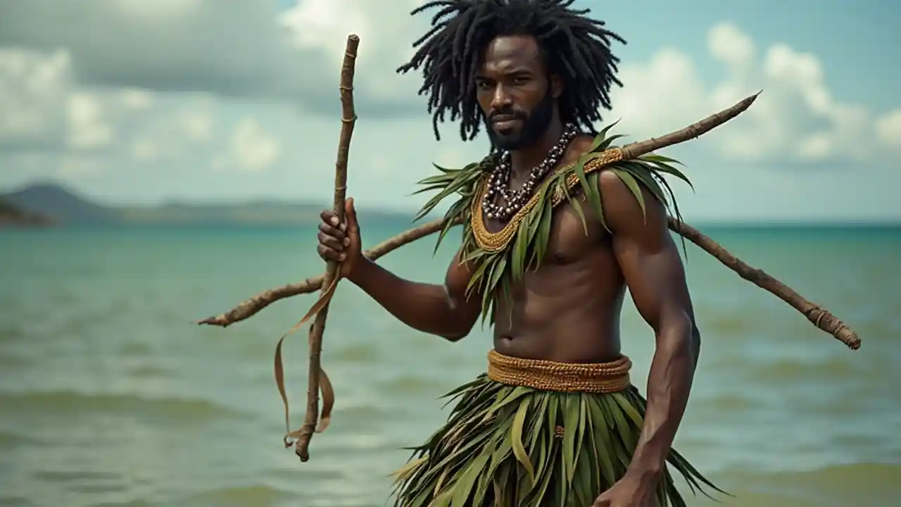 Askari-Jeshi wa Fiji Mwenye Nywele za Kiafrika na Suti ya Majani
