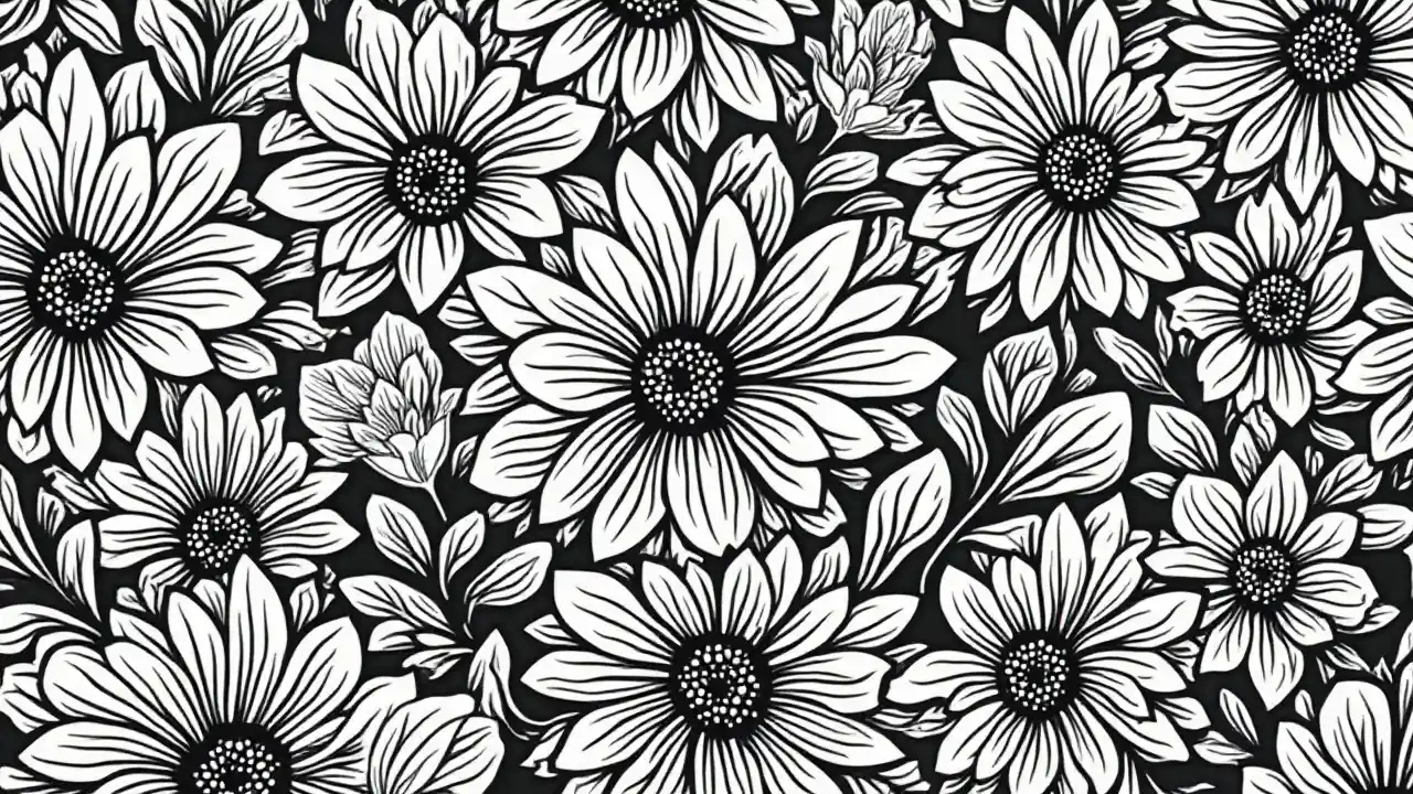 kurudia maua ngozi kuchonga, tofauti kubwa nyeusi na nyeupe lino kukata, mistari bold, rahisi