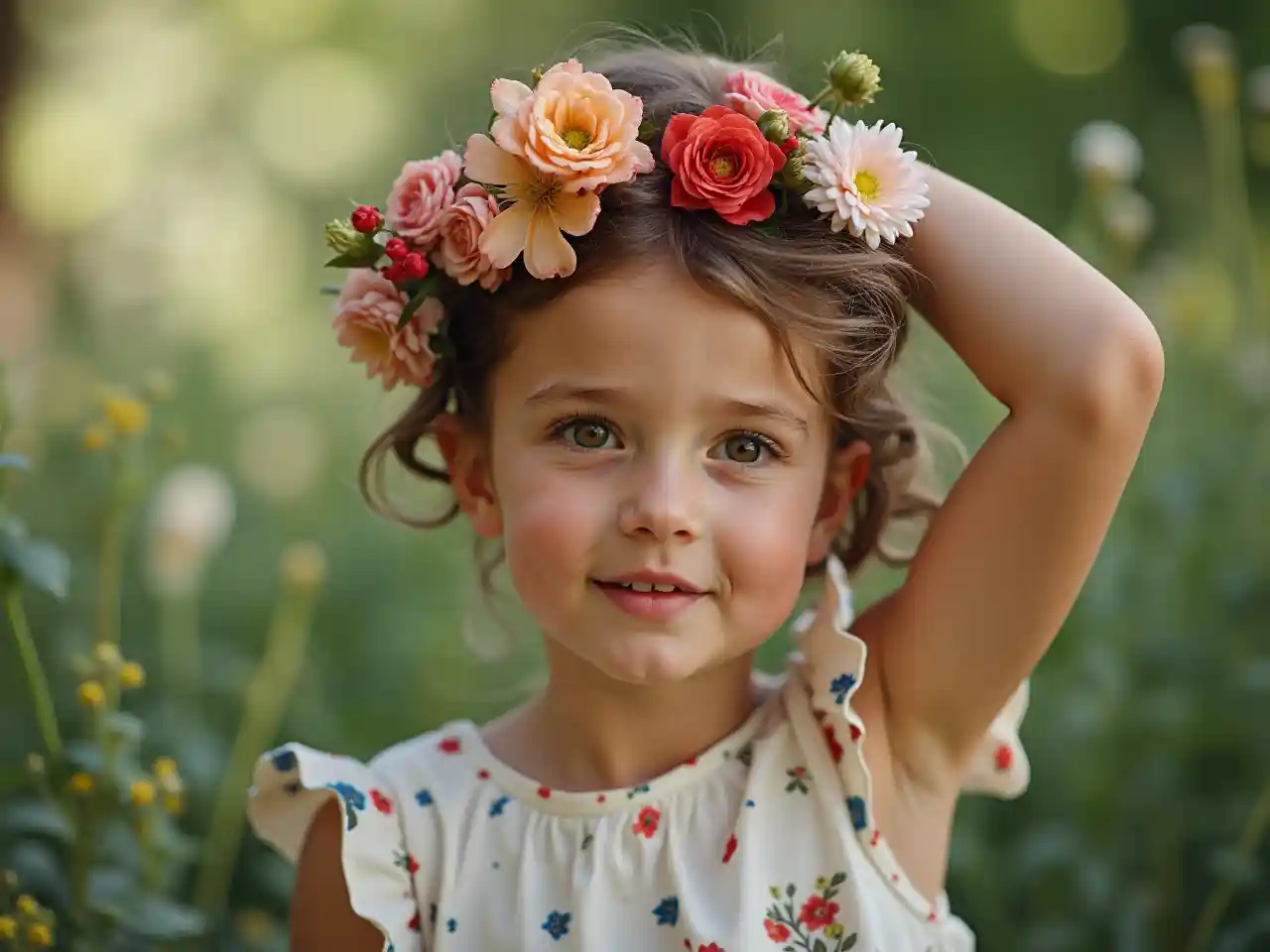 Msichana Mwenye Taji ya Maua Katika Nywele