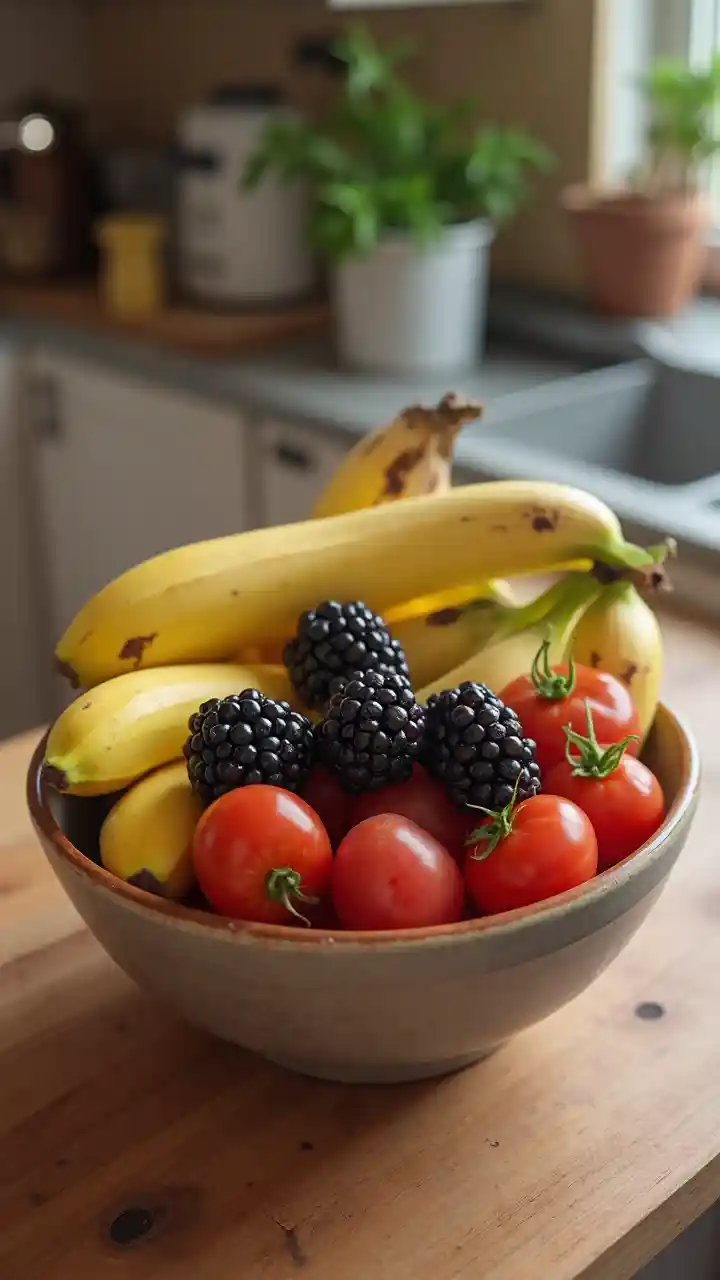 Bonde la kujaza na ndizi, Blackberries, Nyanya & Zabibu. Maelezo ya awali