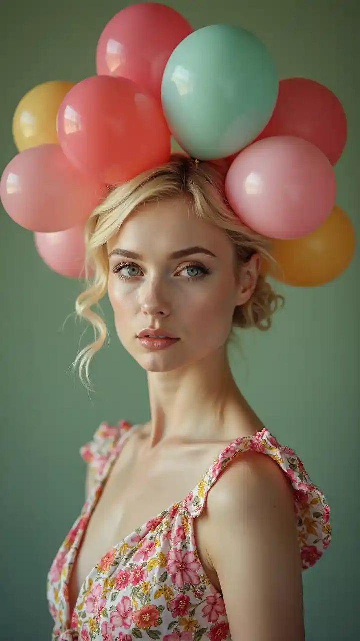 kike blonde, furaha, rangi mbalimbali mavuno, balloon kifuniko cha kichwa, kifahari, na kina cha uwanja, minimalist
