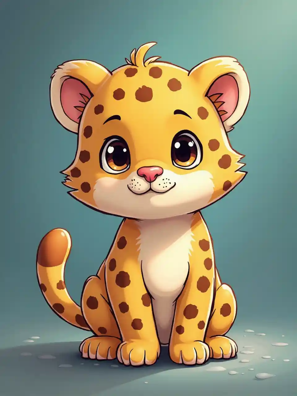 Williamcute, fluffy, jaguar, full view, chibi style, disney style, cartoon style, pixar style, akikabiliwa na kushoto kufanya kuangalia futuristic