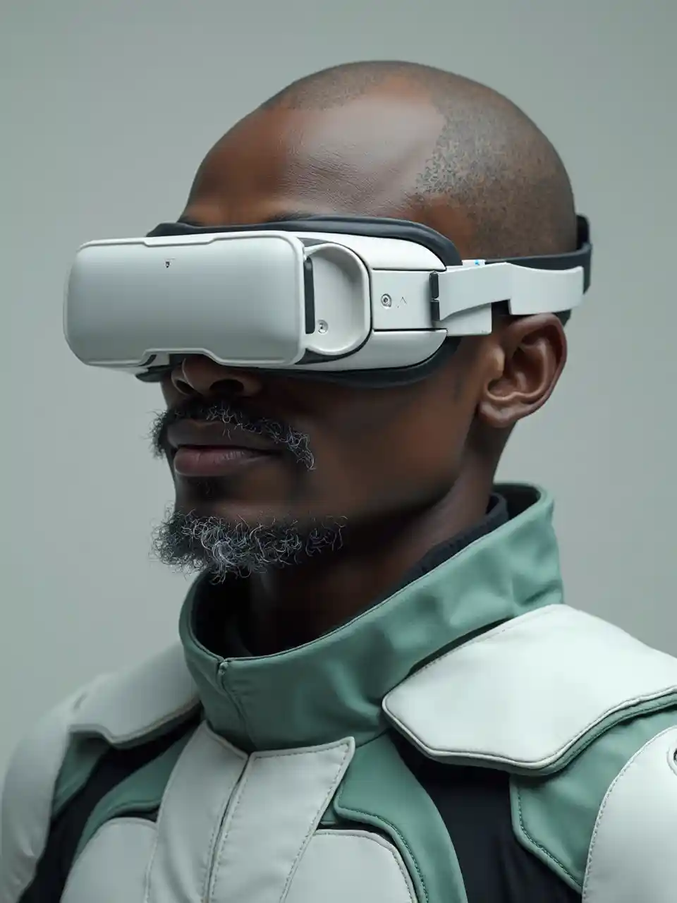 Black Man kijivu katika Futuristic PSVR2 Mavazi