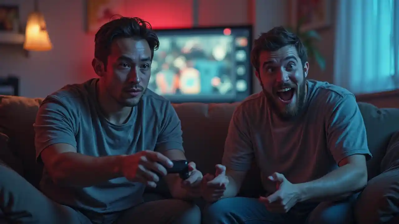 graceWavulana wakubwa wawili wakicheza michezo ya video