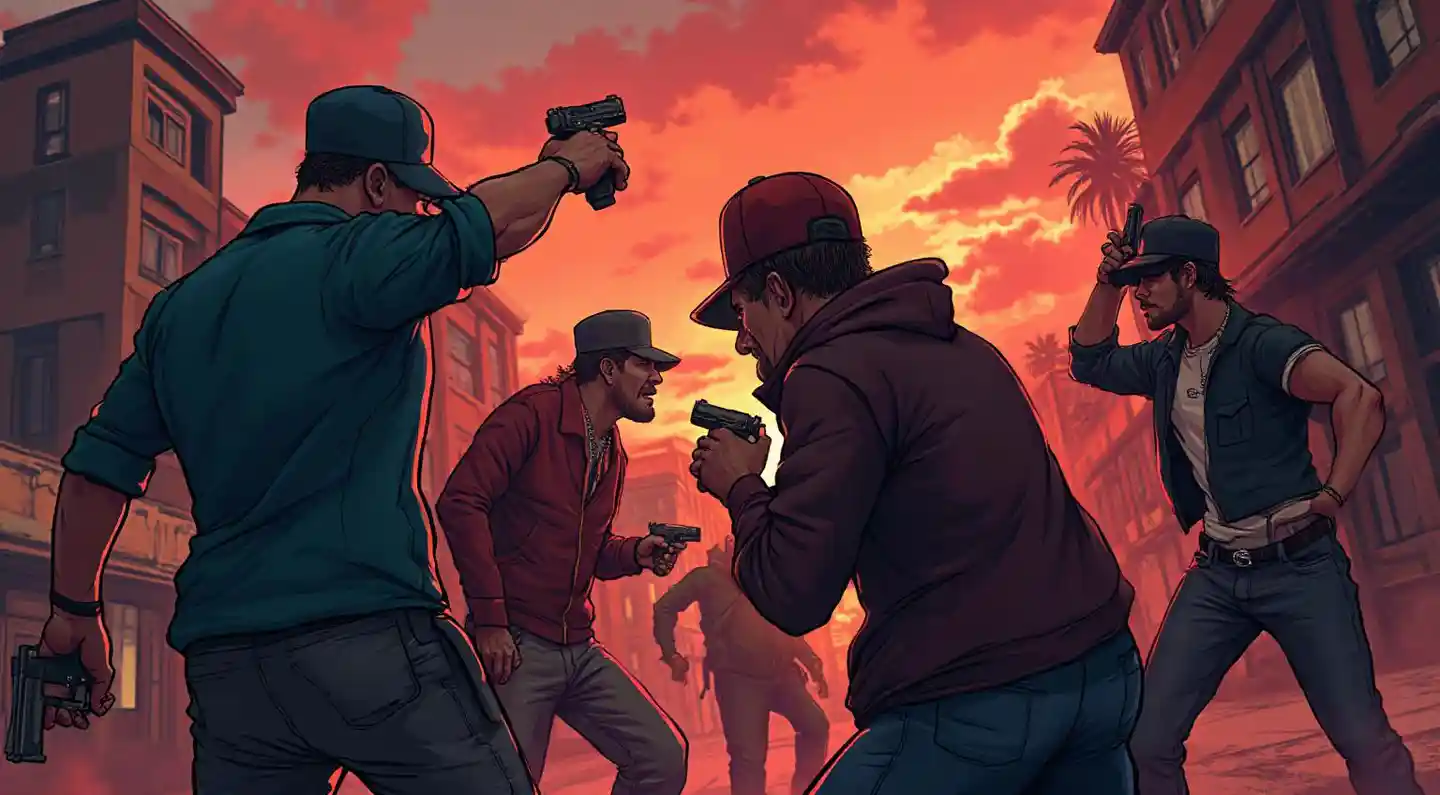 ElijahGTA style illustration, kuonyesha eneo la vita vya genge, makali, mchezo