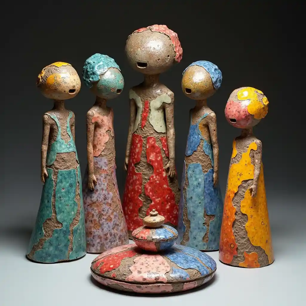 Tótem de cerámica de 5 takwimu za jiometri ya mawe na kati ya Tumia jiwe lenye rangi yenye kung'aa katika nyenzo yenye rangi ya juu. Margen nyingi
