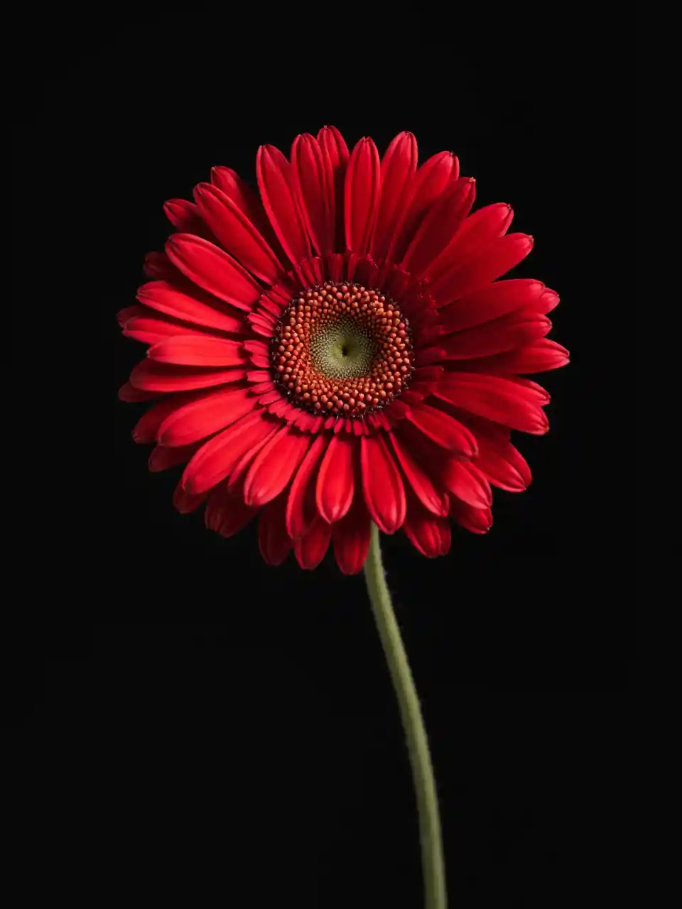Red Gerbera Daisy kwenye mandhari nyeusi na bendera ya Marekani
