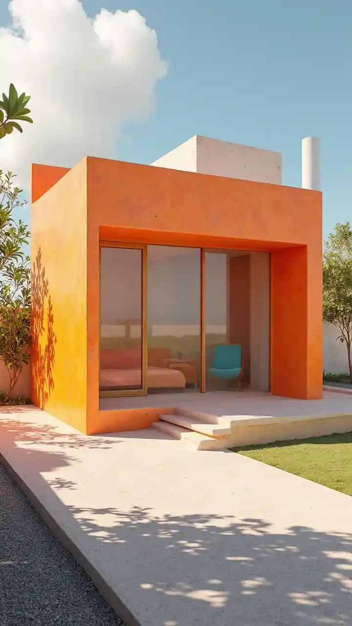 Modelo ya nyumba ndogo na minimalist ya glasi iliyoongozwa na usanifu wa Luis Barragán na rangi za kupendeza. Kuwekwa katika capelo