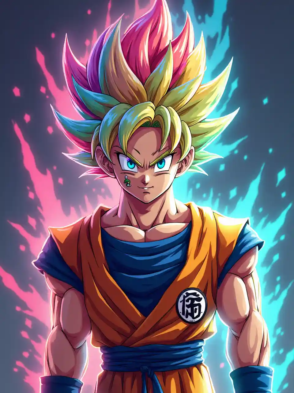 Badiliko la Rangi la Goku kwa Nywele za Upinde wa mvua na Aura