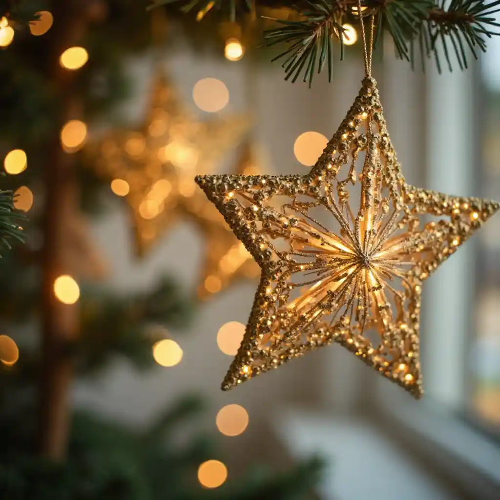 Mapambo ya Nyota ya Krismasi Yenye Dhahabu Yaling'ang'ana