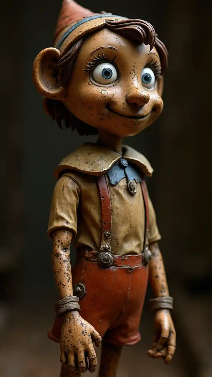 Uhalisi wa kichawi, Pinocchio kuunganishwa tena kwa kutumia sanaa ya kale ya kintsugi, na nyuzi na nyuzi zilizojaa dhahabu, kuchonga mbao ngumu, iliyoongozwa na mtazamo wa hatia wa Jacob Tremblay, takwimu iliyofanywa kuwasilisha uzuri kupitia kutokamilika, iliyoongozwa na Hayao Miyazaki, ushirikiano wa kipaji wa mwanga na kivuli kuonyesha mishipa ya dhahabu, na Jim Henson, sauti za dunia zinazoambatana na dhahabu, usawa wa hali ya akili na hekima katika eneo,
