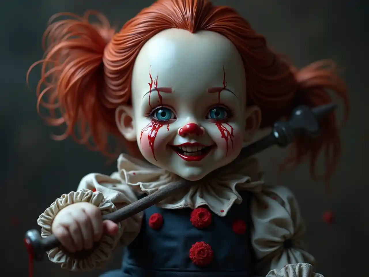 3D gothic chokaa doll kama mimes na machozi ya damu hyper kweli 8K kushikilia bomba