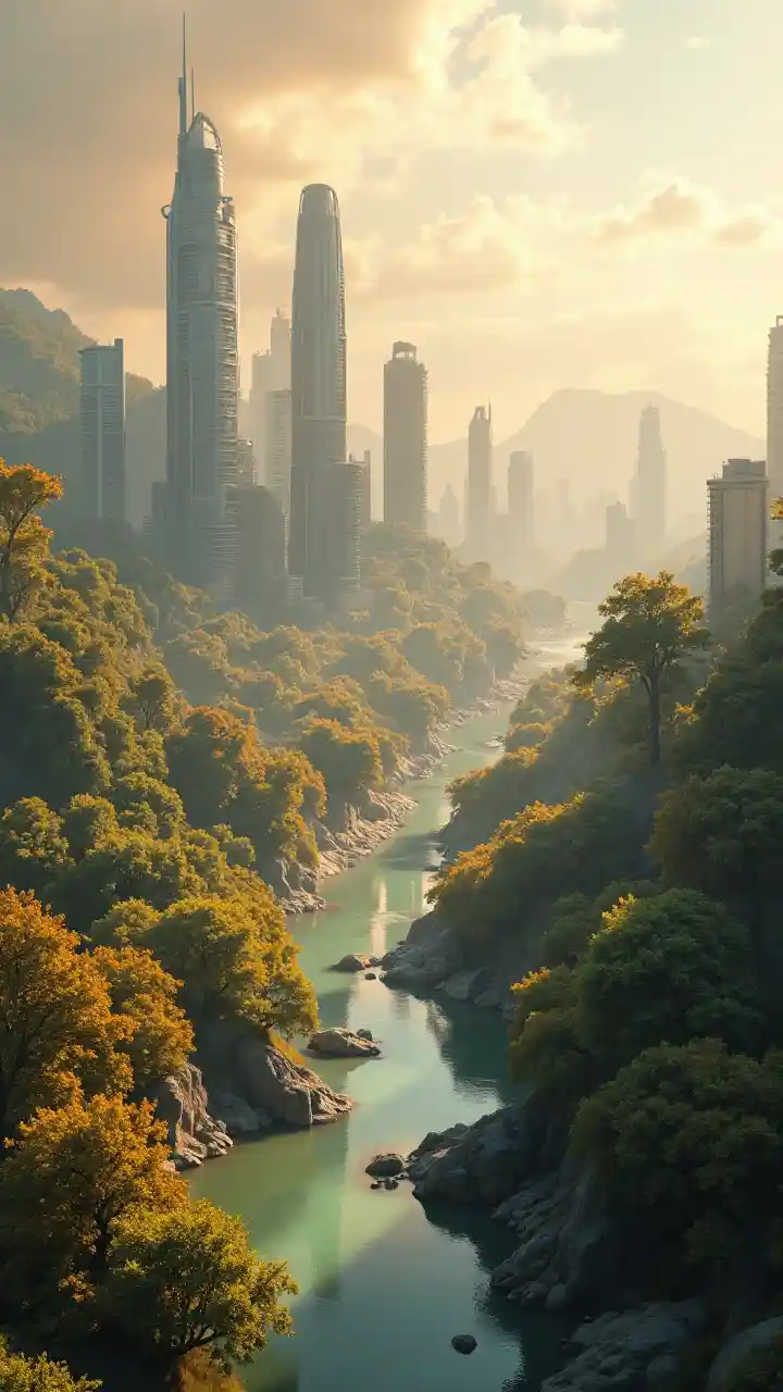 Jiji la Wakati Ujao Lenye Miti na Mito