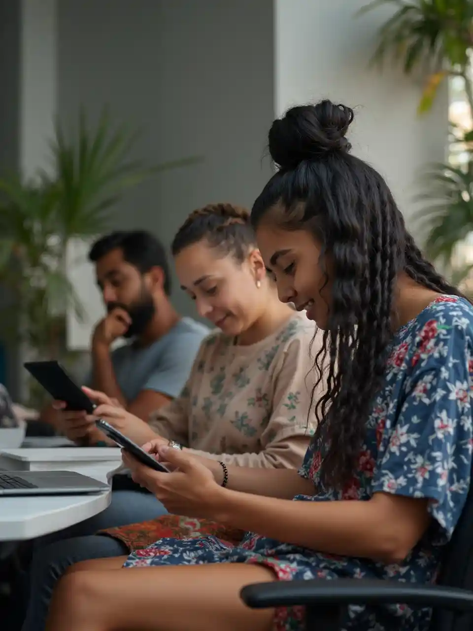 kundi la wenyeji kutoka Guam katika ofisi wakivinjari mitandao yao ya kijamii na vifaa vyao vya mkononi.