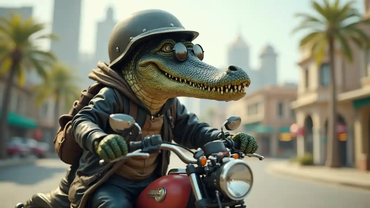 Mpanda Baiskeli wa Mamba Katika Jiji