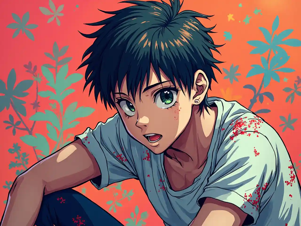 kijana kijana, ugonjwa hanahaki, manga style, rangi mkali