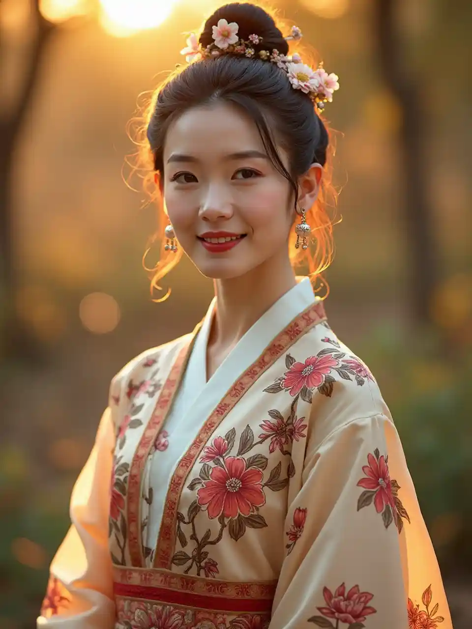 Picha ya Mwili wa Hanfu na Saa ya Dhahabu ya Maua
