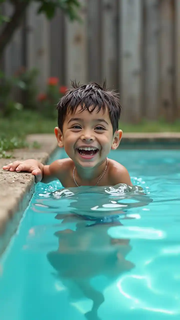 Mvulana Mwenye Shangwe Anaruka Katika Dimbwi la Maji