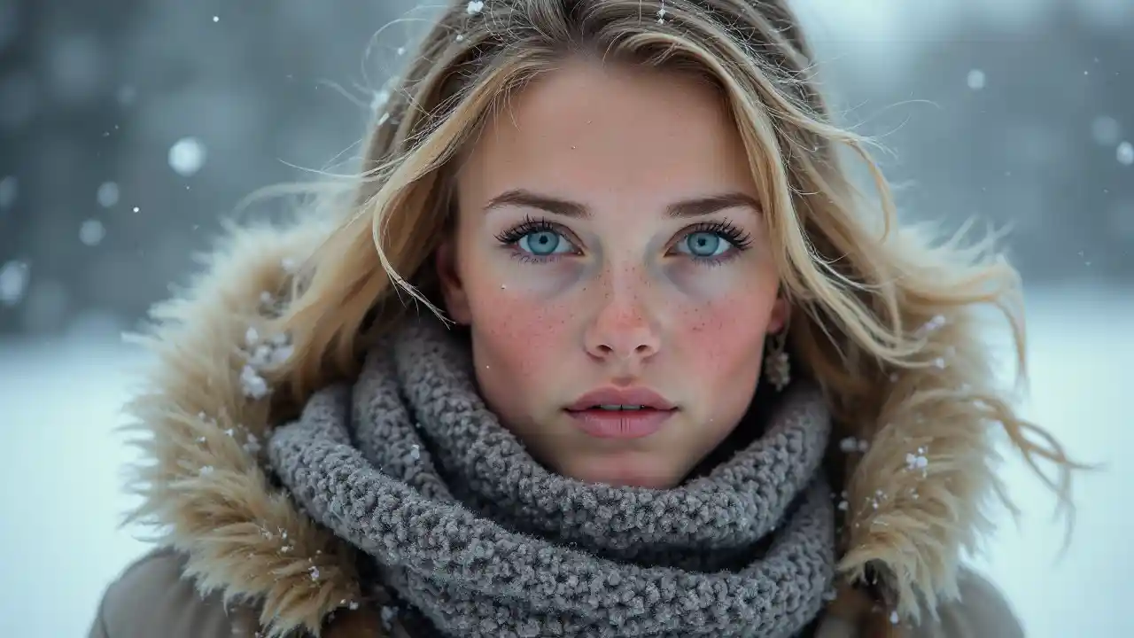 Episch picha, harlekijn, nywele blonde, Jonge vrouw, blauwe macho, veel anjers, veel sneeuwklokjes, lange losse krullen, harnas metalen, jewelen met rode edelstenen, crown met rode edelstenen, ingewikkelde versieringen, high definition, majira ya baridi, snow, upepo