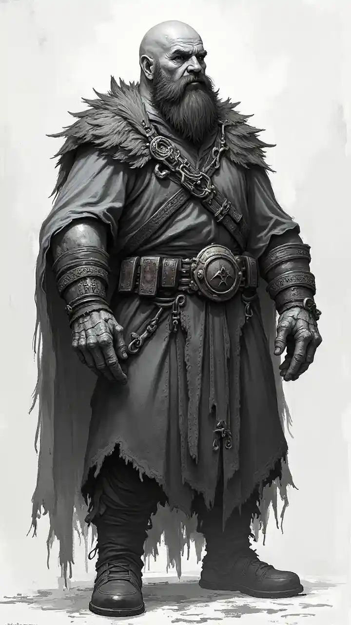 Picha inapaswa kuwa mchoro, katika monochrome. Harimu ni kasisi wa mungu Groetus, mungu anayehusianishwa na nyakati za mwisho na usahau. Harimu anajulikana kwa tabia yake mbaya, maoni yake ya kuamua wakati ujao, na ujitoaji wake kwa mungu. Mara nyingi yeye hueleza imani zake za kutoweza kufa na kupendezwa na kifo na uharibifu.